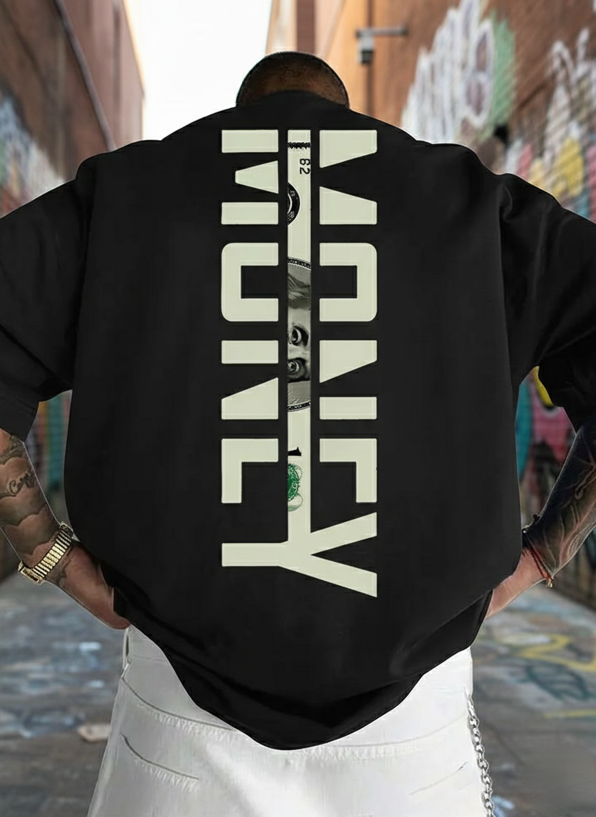 Man’s Money Printed oversized black with Round neck cotton fabric T-shirt