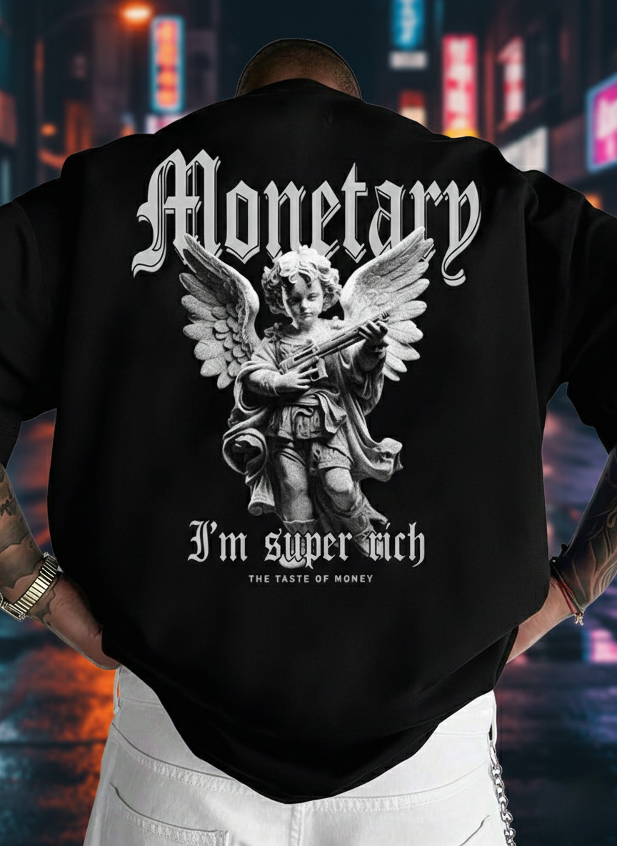 Man’s Monetary Printed oversized black with Round neck cotton fabric t shirt