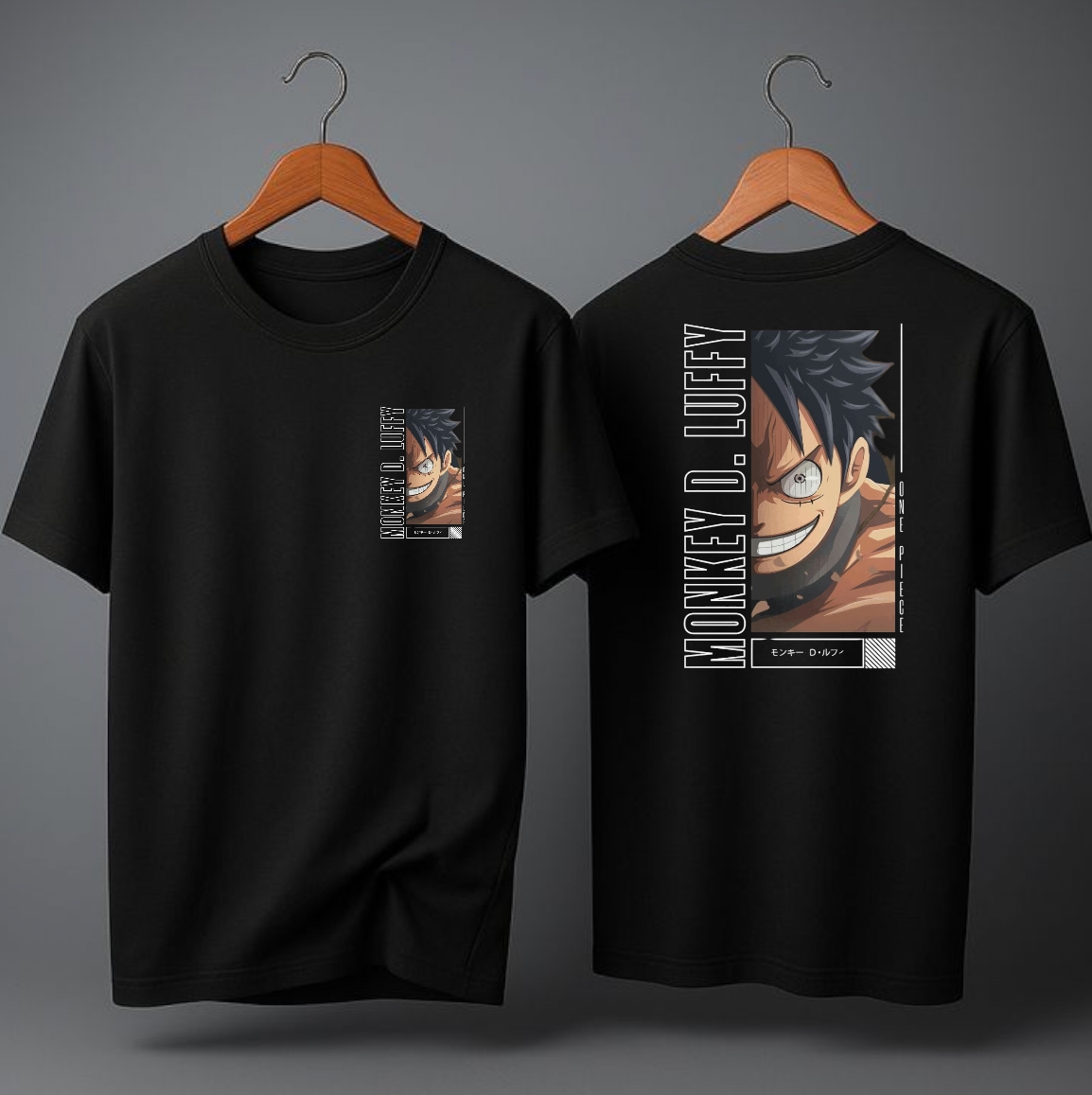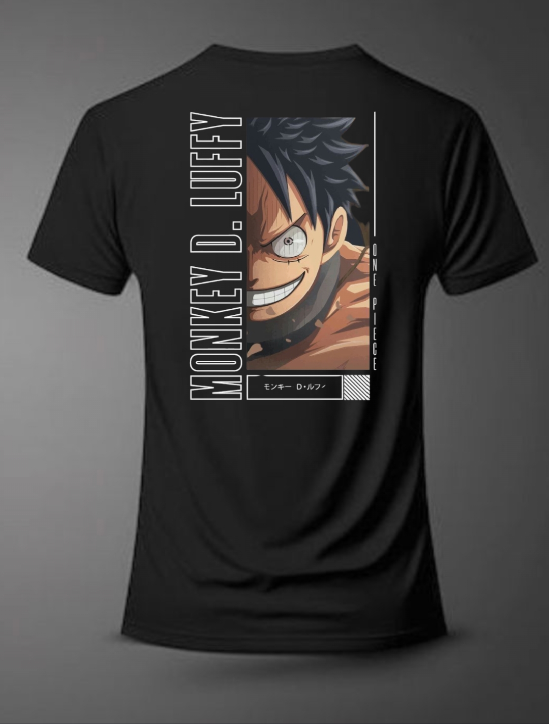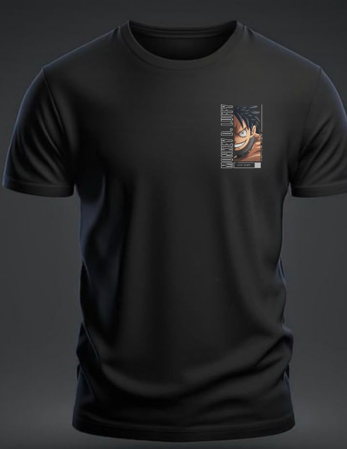 Nk- One piece Money D-Luffy Oversize Black Round neck Printed half sleeve Black Cotton T-shirt