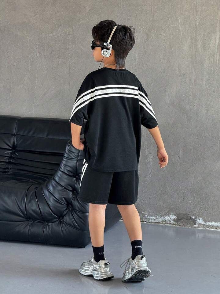 Nk-oversized & shorts white striped Co-ord with cotton fabric